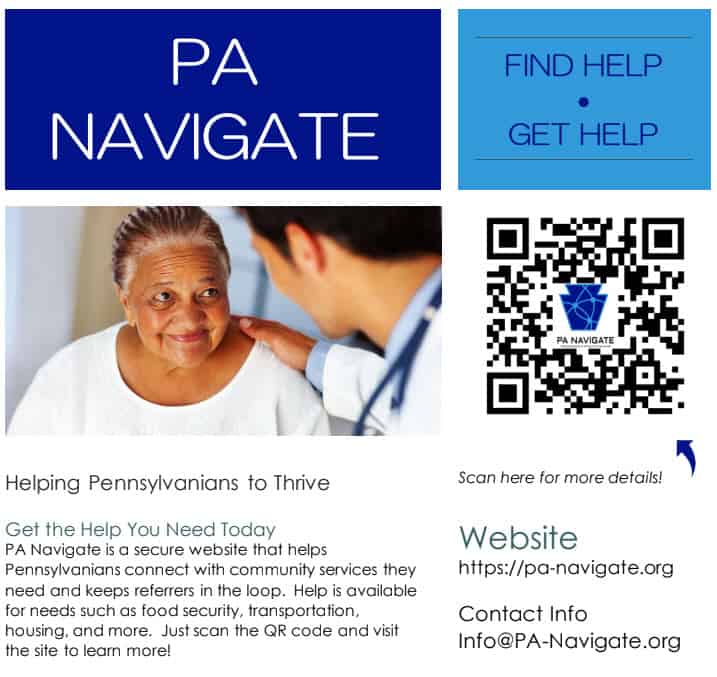 PA Navigate connects you to helpful services and support available throughout your community. This tool makes it easier to find local resources related to education, health, housing, and other everyday needs.